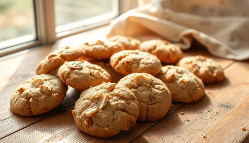 Os cookies de amêndoa e coco sem glúten são uma delícia para todos. Eles são perfeitos para quem tem restrições alimentares. Esses cookies são feitos com ingredientes que são bons para a saúde.