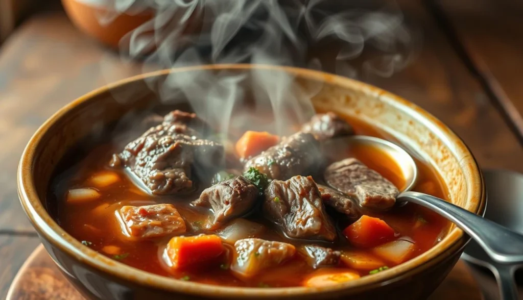 A receita de caldo de picanha é ótima para quem quer um prato saboroso e saudável. Os ingredientes são fáceis de encontrar e o preparo é simples. Isso a torna uma estrela na culinária brasileira.